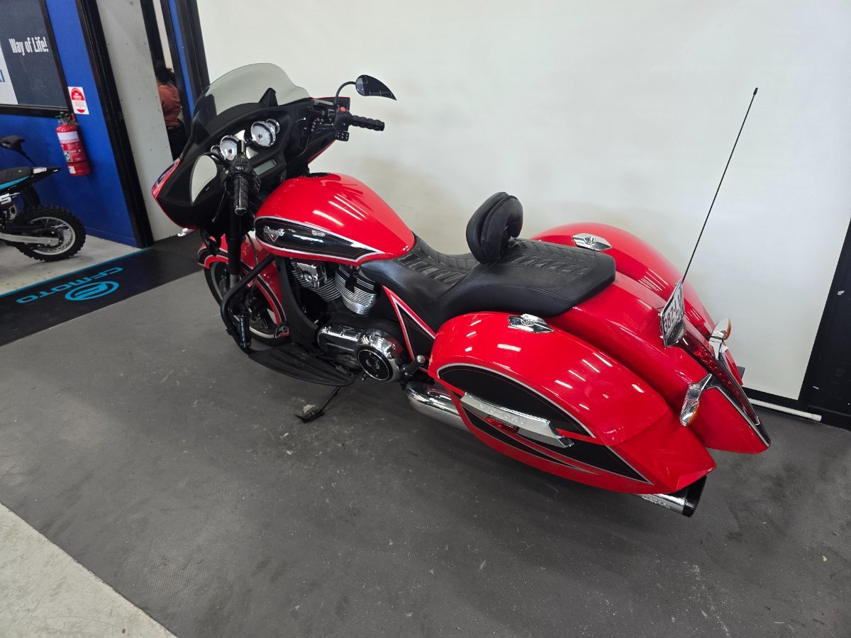 2014 Victory Ness Cross Country^^A true standout in the touring cruiser world and a rare model that blends American muscle with custom-styled finesse. Built in collaboration with Arlen and Cory Ness, this bike carries that unmistakable custom flair straight from the factory, with unique styling touches, premium finishes, and limited-edition detailing that set it apart from the standard Cross Country. Powered by Victory?s proven 106 cubic inch Freedom V-twin engine paired with a smooth six-speed transmission, it delivers plenty of torque for effortless highway cruising while still offering refinement and reliability for long-distance touring. The Ness Cross Country features a low-slung, aggressive stance with factory custom paintwork and chrome accents that showcase its premium heritage. It also boasts a comfortable, stretched-out riding position designed for long days in the saddle, while the large fairing provides excellent wind protection. Factory hard saddlebags offer ample storage, making it a practical choice for touring, while the bike?s custom touches give it the presence of a hand-built cruiser. This particular 2014 model has been well cared for and is in great condition, offering both performance and comfort with the exclusivity that only a Ness edition Victory can provide. It?s a motorcycle that not only rides beautifully but also turns heads wherever it goes, making it perfect for the rider who wants something unique, powerful, and ready to cover big miles in style.^^Located just 50 minutes from Brisbane's CBD. With the option for a 3-year parts and labour Mechanical Protection Plan with any Approved Used bike, a 49-point inspection and 2 days free exchange for peace of mind, there is no better place to buy a Used Bike in Australia. plus access to Australia?s largest resource of Motorcycle Finance ,with fast, friendly, personal service either in our stores , from